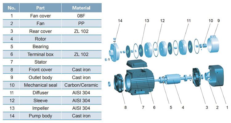 - قابلیت : موتور با سیم پیچ مسی - مناسب برای پمپ کردن آب تمیز با اندکی ناخالصی و سیالات غیرخورنده .